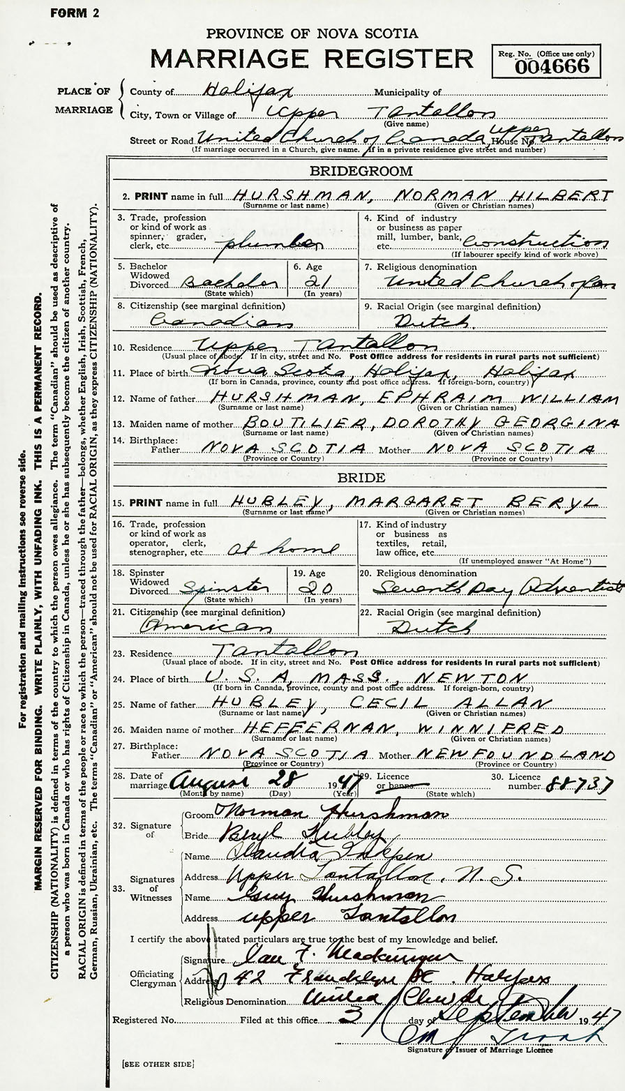 Groom Norman Hilbert Hurshman