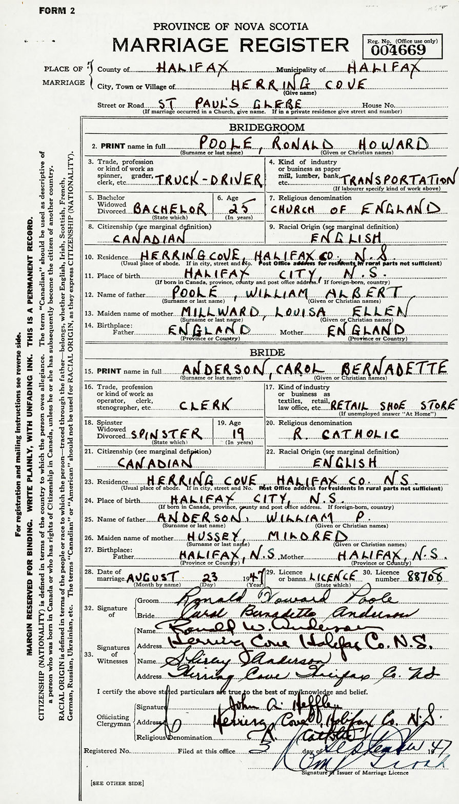 Groom Ronald Howard Poole