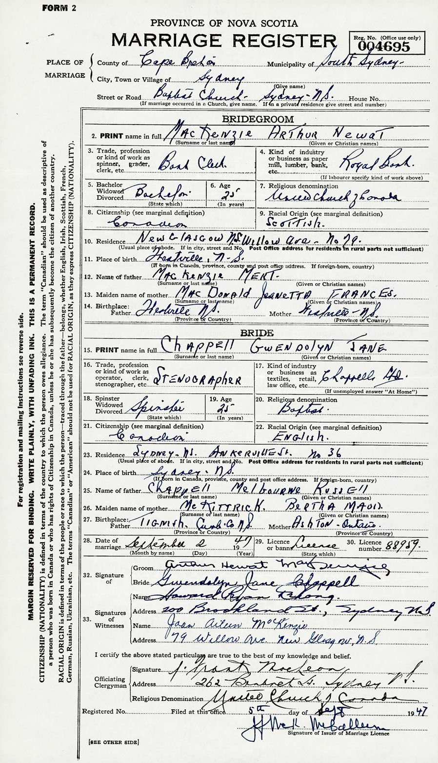 Groom Arthur Hewat MacKenzie