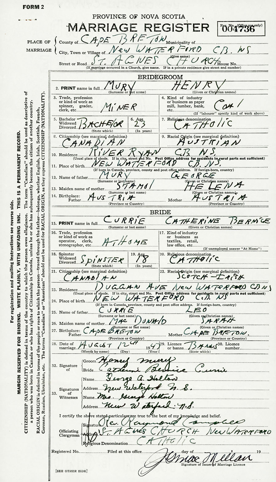 27. Birthplace Father Cape Breton Mother Cape Breton