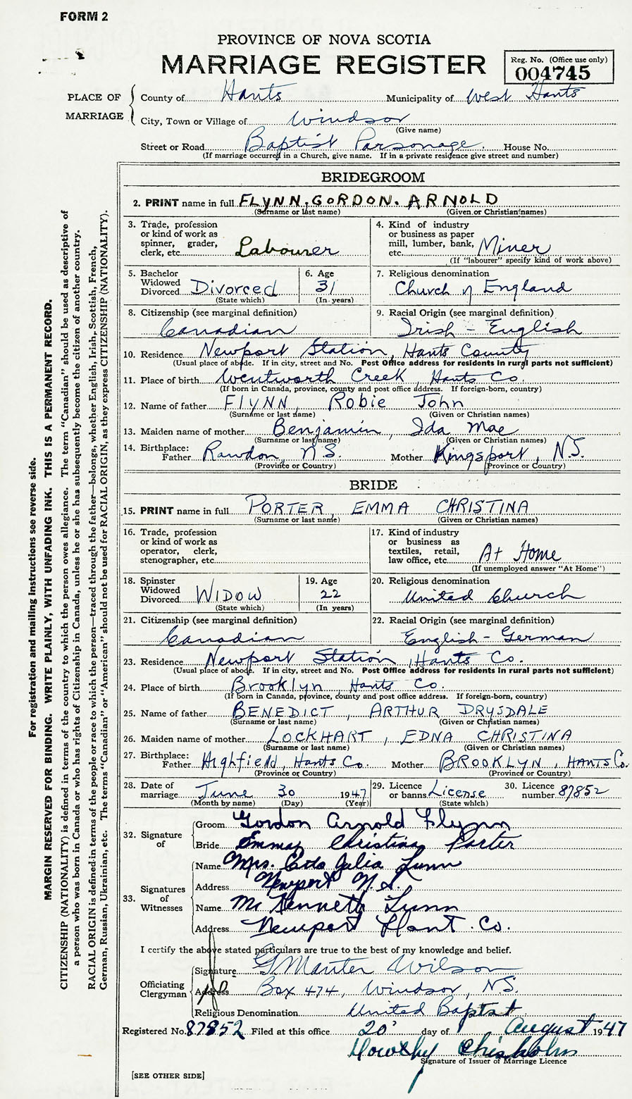Groom Gordon Arnold Flynn