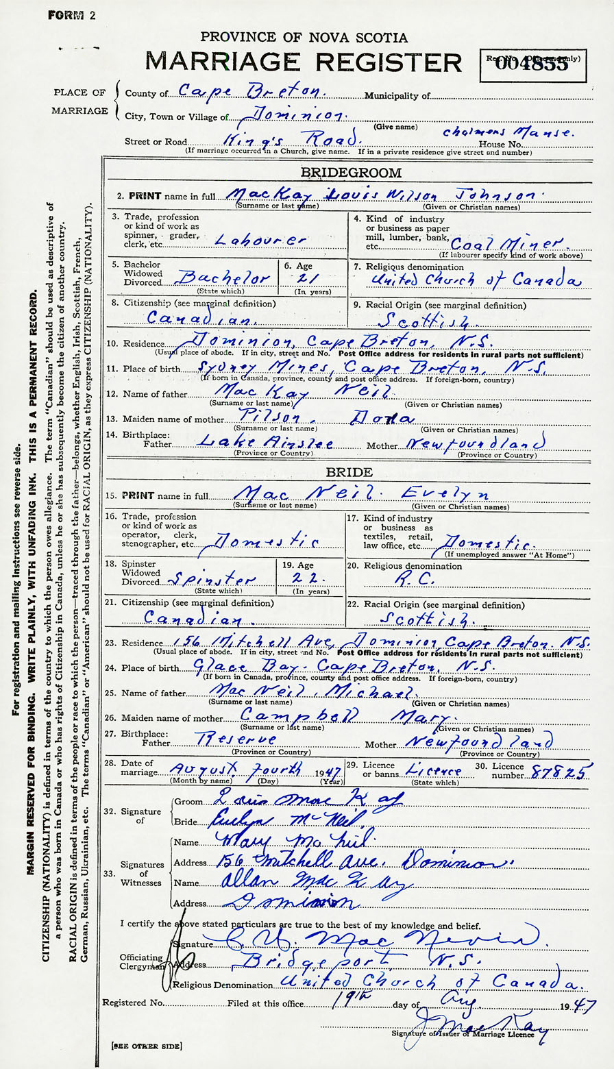 Groom Louis Wilson Johnson MacKay