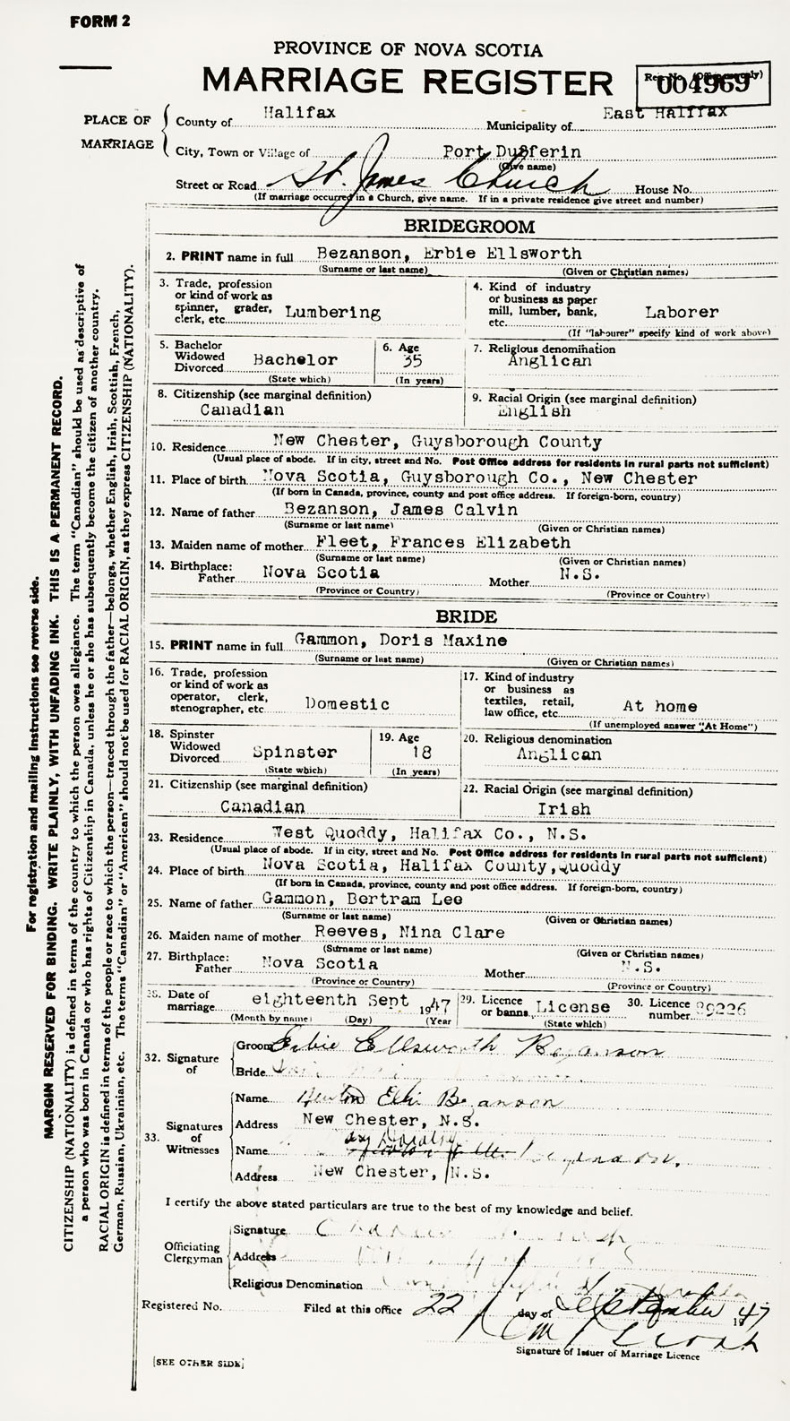 2. PRINT name in full Bezanson, Erbie Ellsworth
