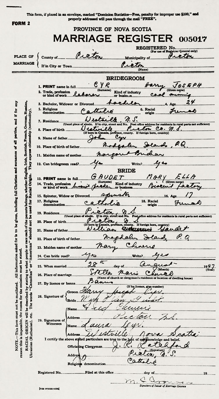 Groom Harry Joseph Cyr