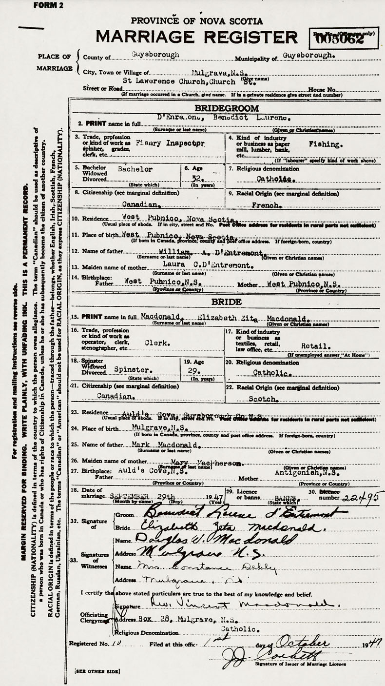 2. PRINT name in full d'Entremont, Benedict Laurene