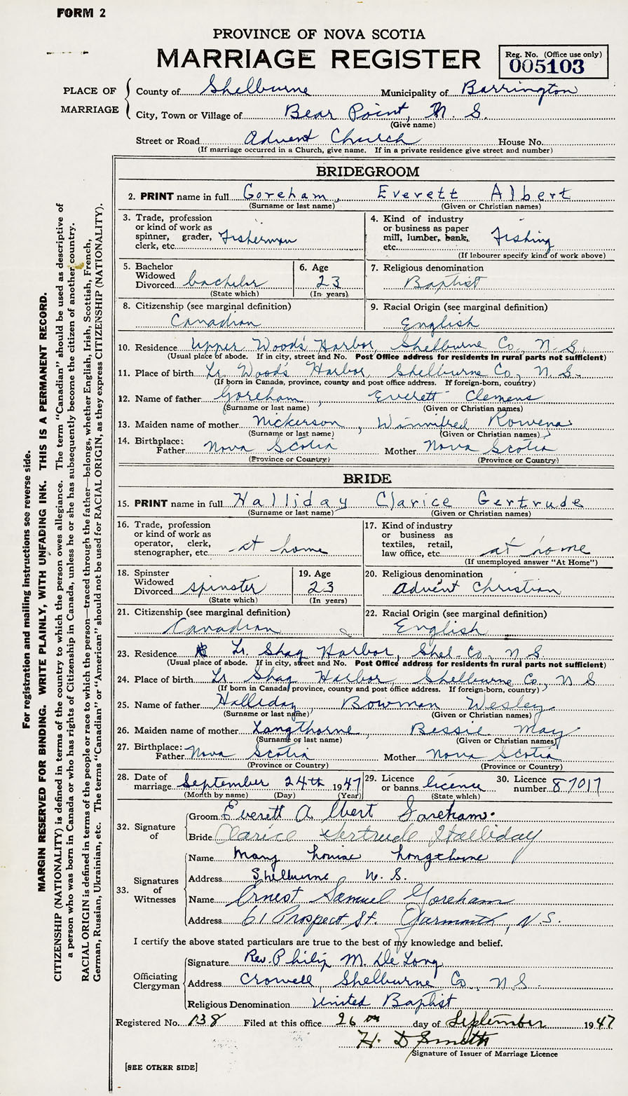 24. Place of birth Lr. Shag Harbour