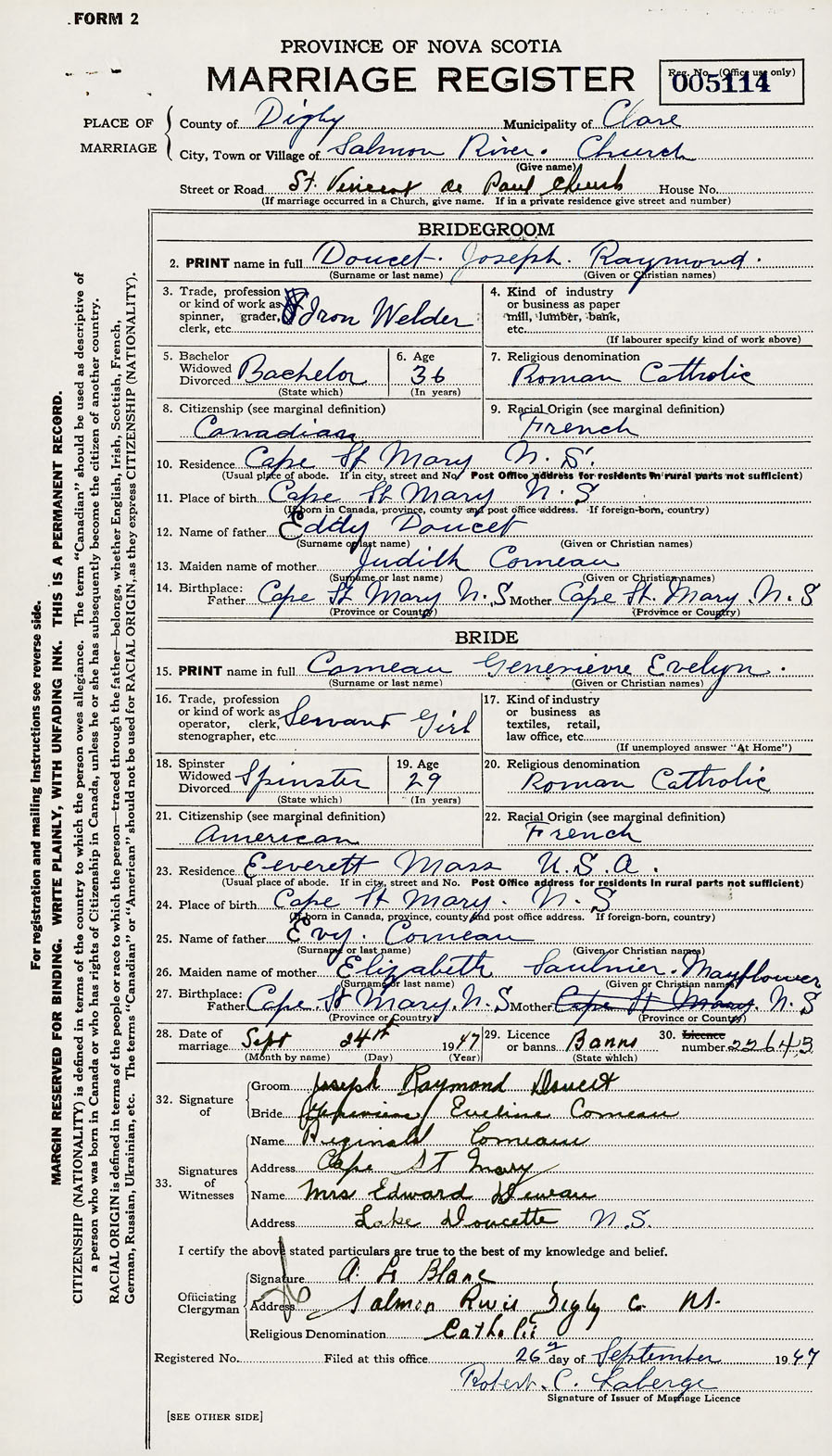 Groom Joseph Raymond Doucet
