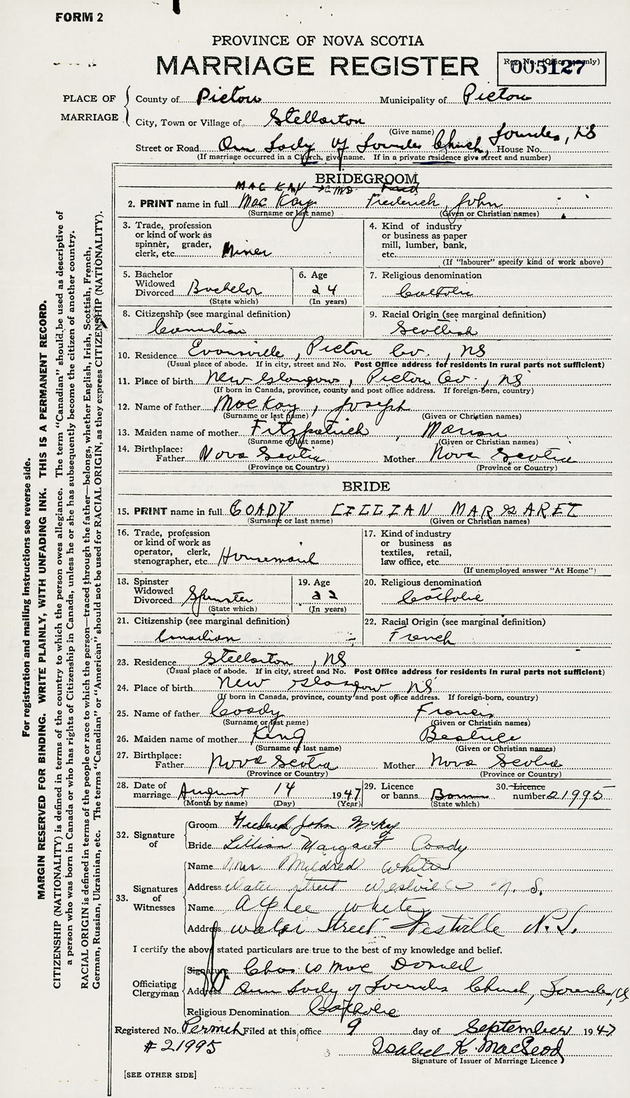 Groom Frederick John MacKay