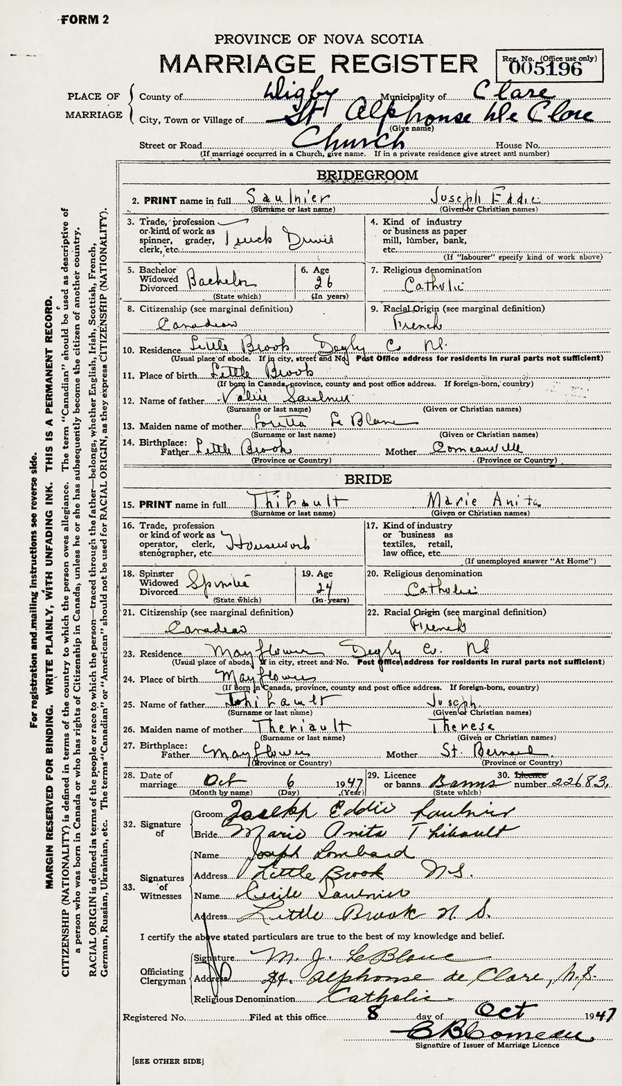 Registration: Year: 1947 number: 005196