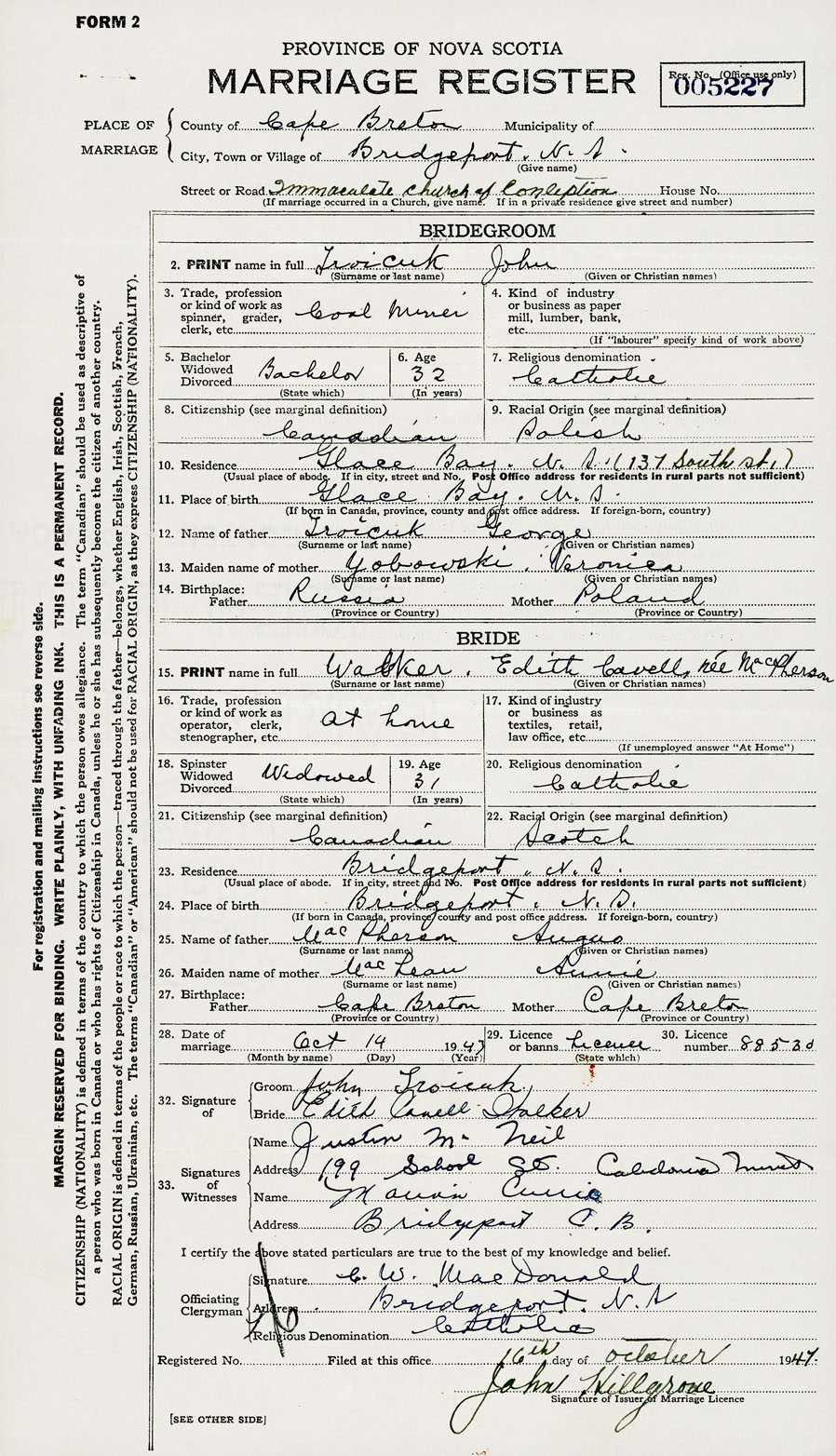 27. Birthplace Father Cape Breton Mother Cape Breton