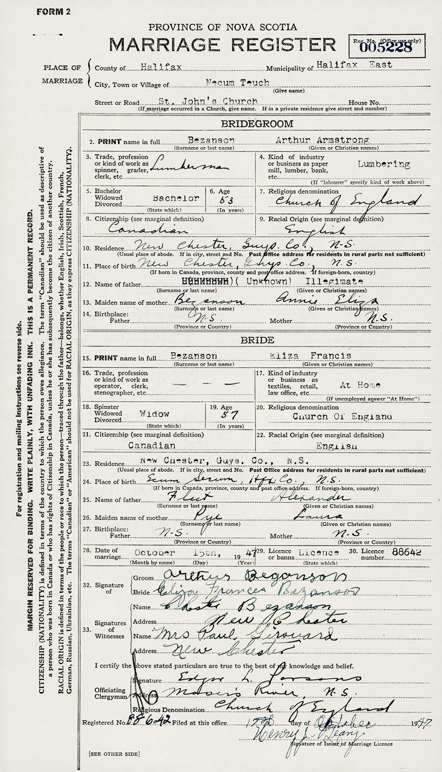 2. PRINT name in full Bezanson, Arthur Armstrong