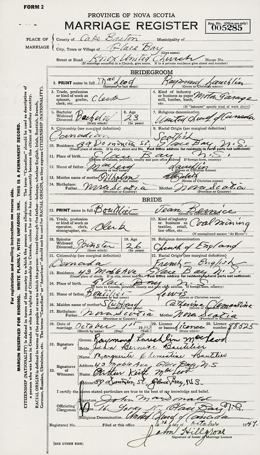 2. PRINT name in full MacLeod, Raymond Lauchlin