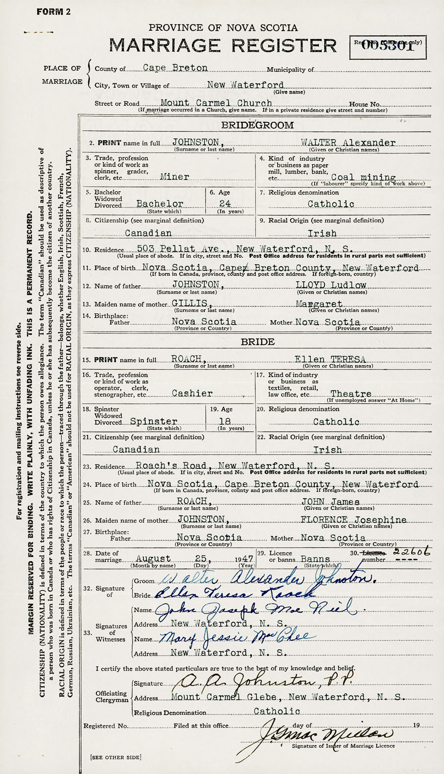 24. Place of birth Nova Scotia, Cape Breton County, New Waterford