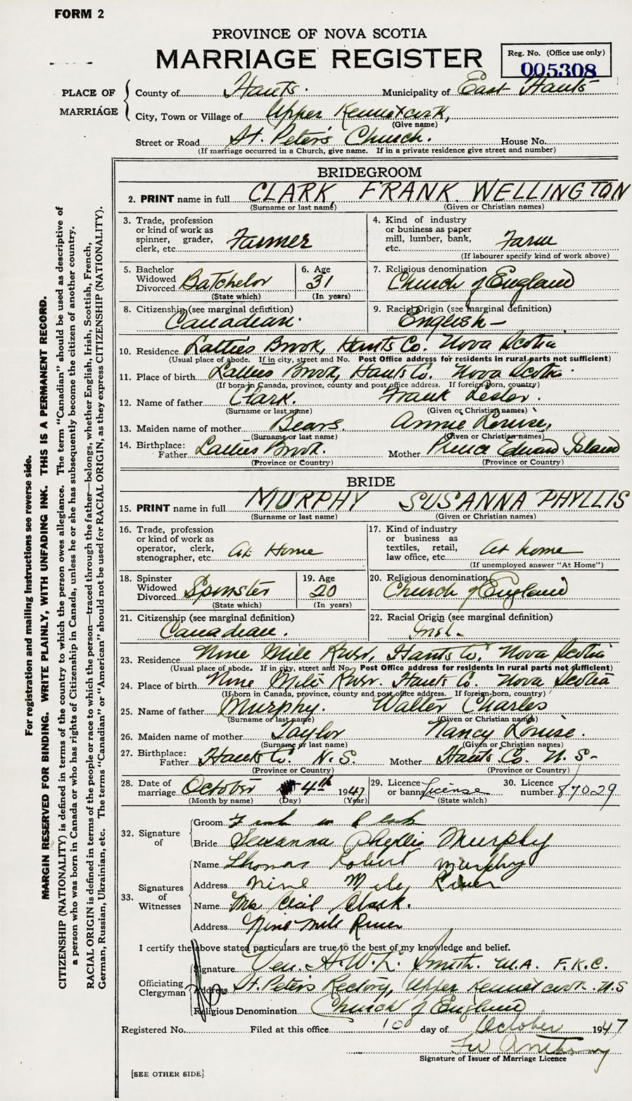 Registration: Year: 1947 number: 005308