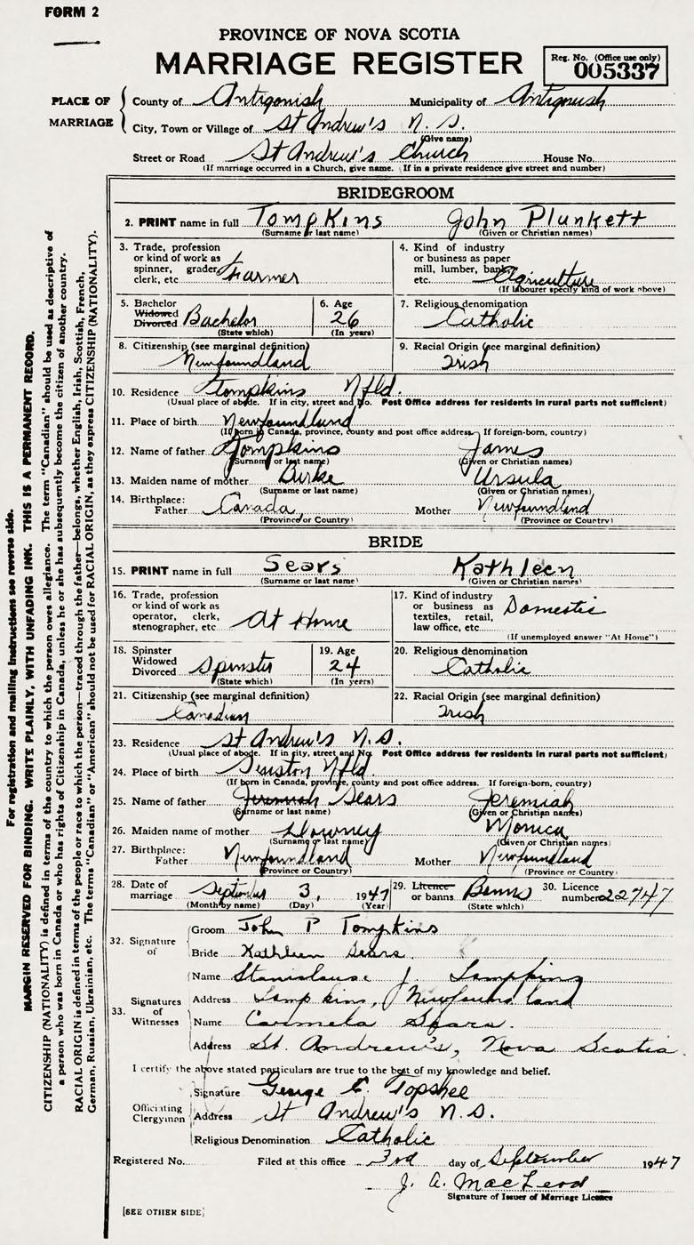 27. Birthplace Father Newfoundland Mother Newfoundland