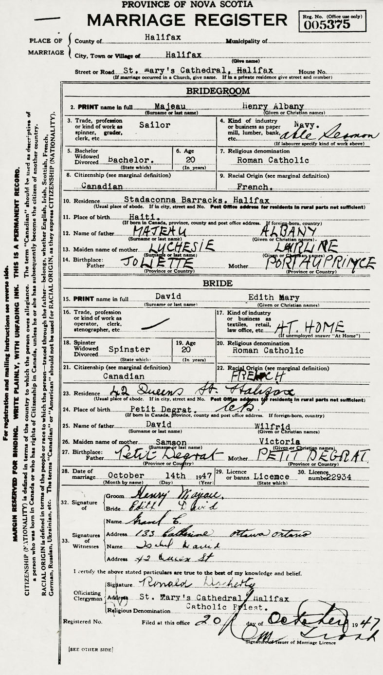 Groom Henry Albany Majeau