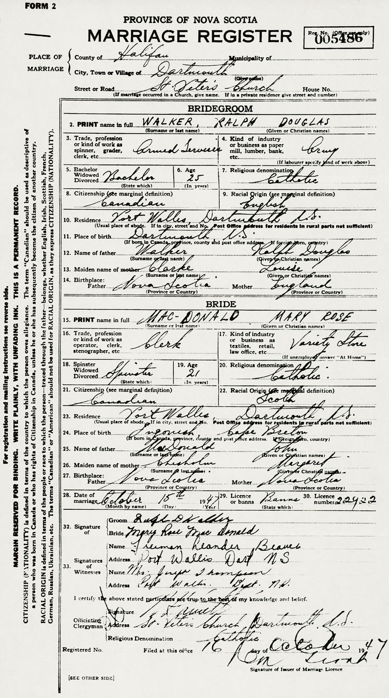 Groom Ralph Douglas Walker