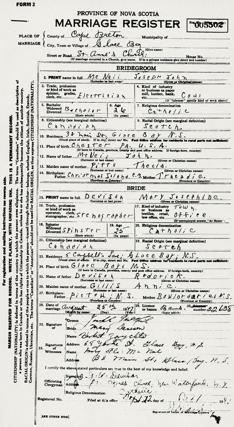 Groom Joseph John McNeil