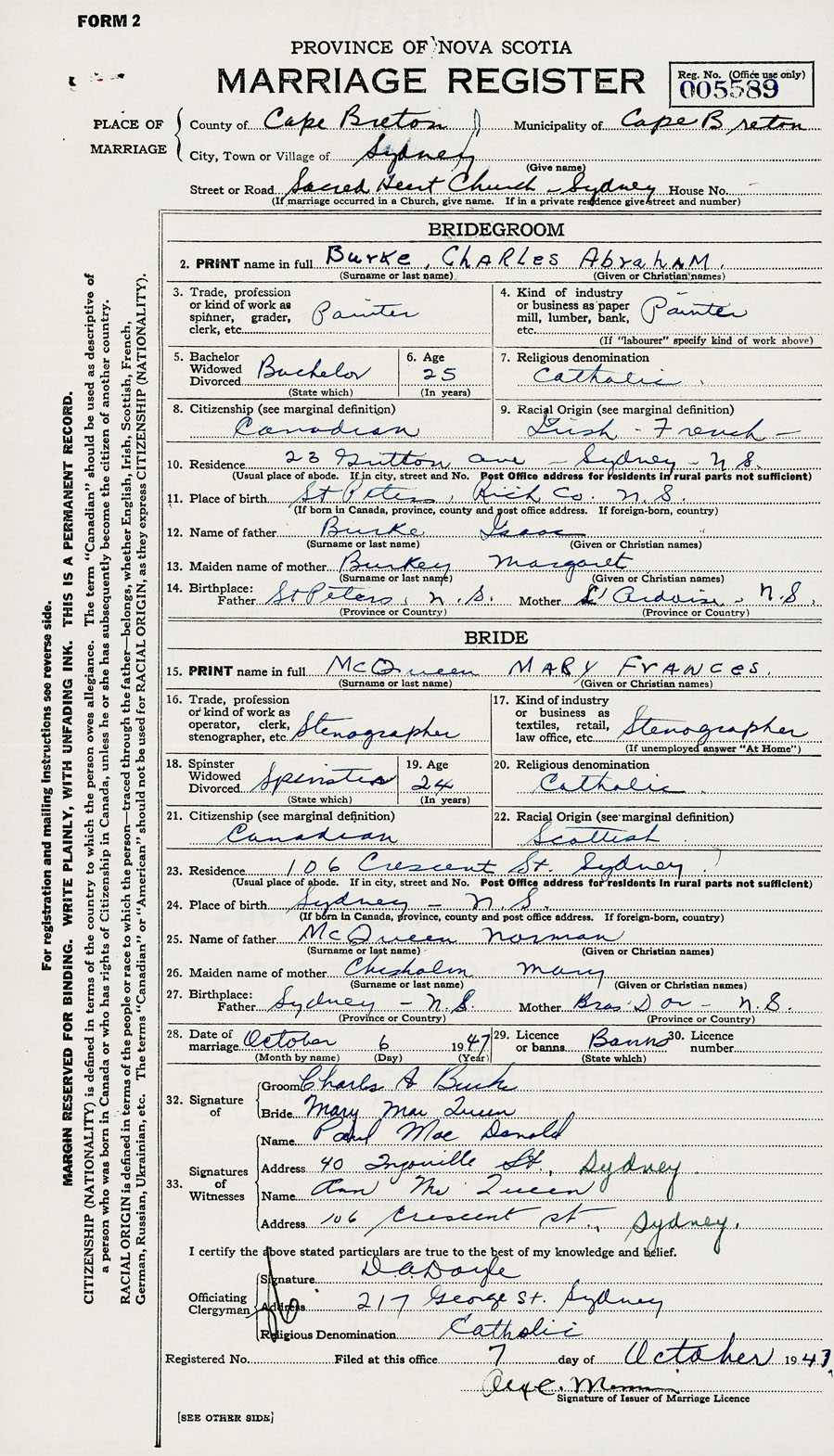 Registration: Year: 1947 number: 005589