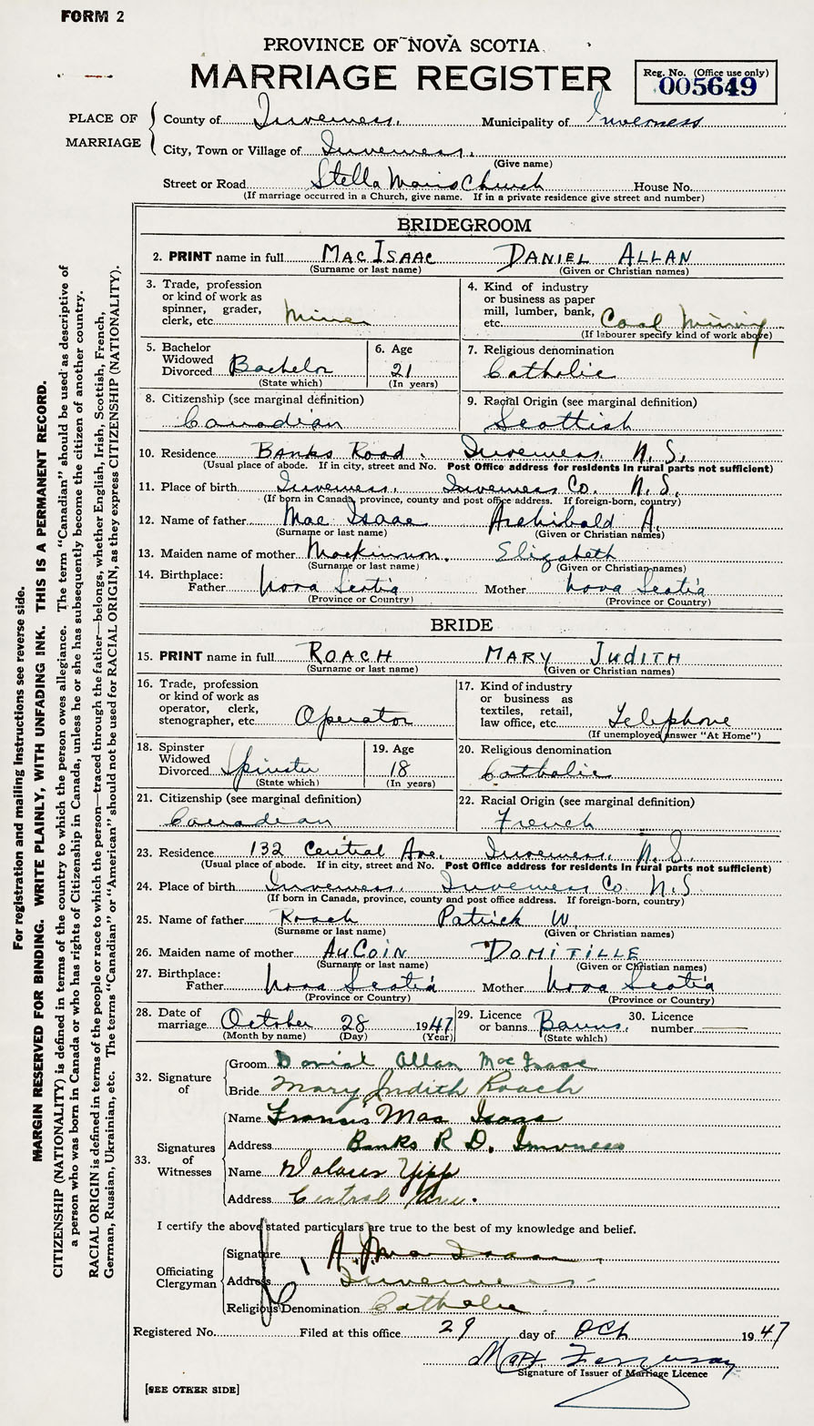 2. PRINT name in full MacIsaac, Daniel Allan