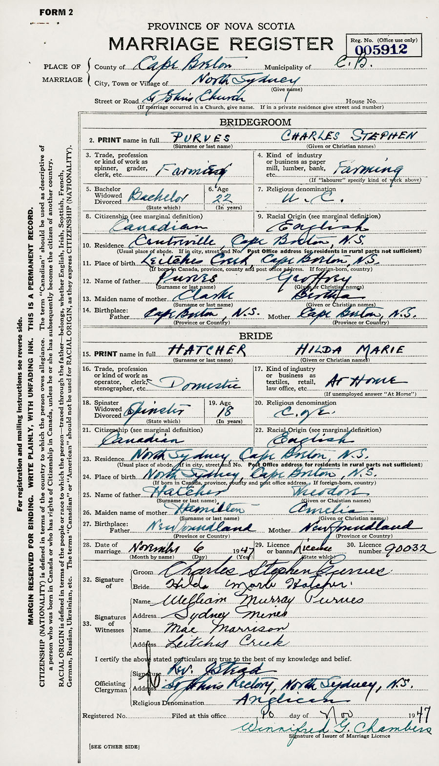 24. Place of birth North Sydney, Cape Breton, Nova Scotia