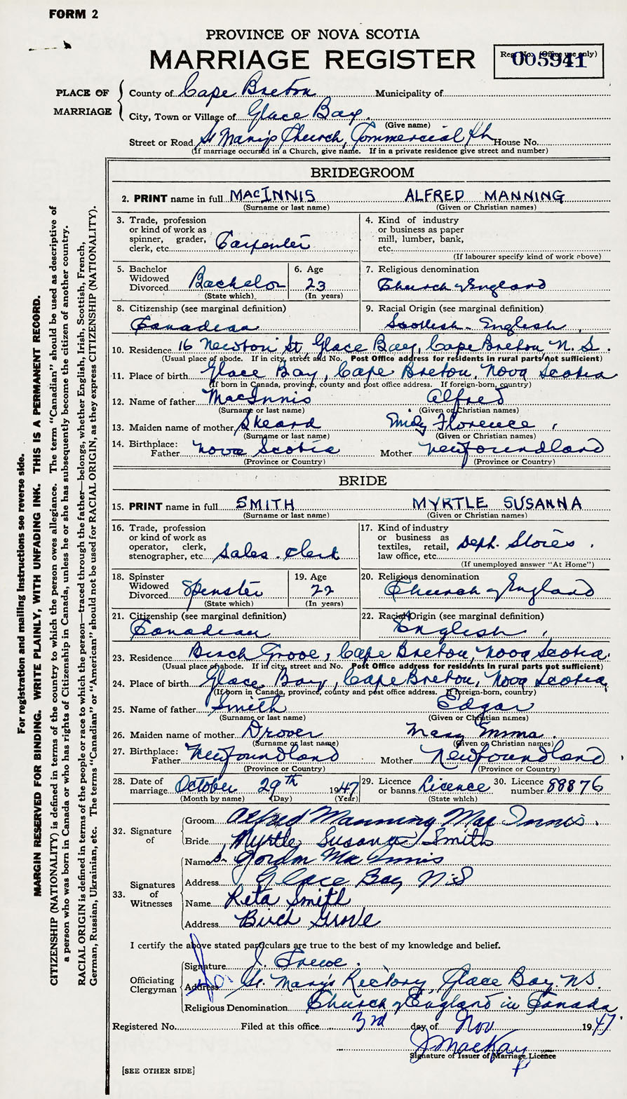 Groom Alfred Manning MacInnis