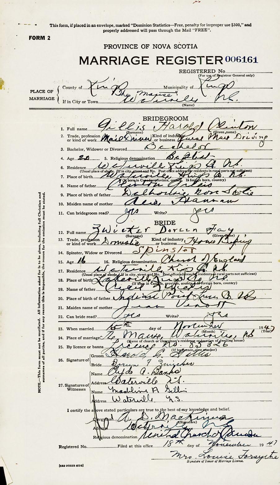 Registration: Year: 1947 number: 006161