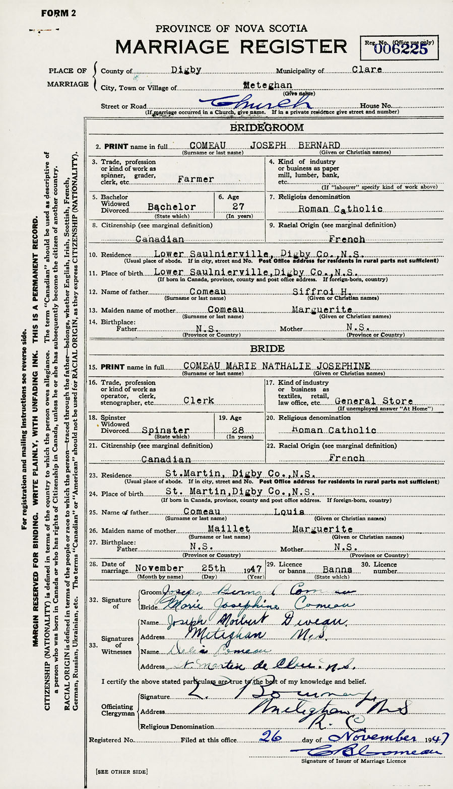 Groom Joseph Bernard Comeau