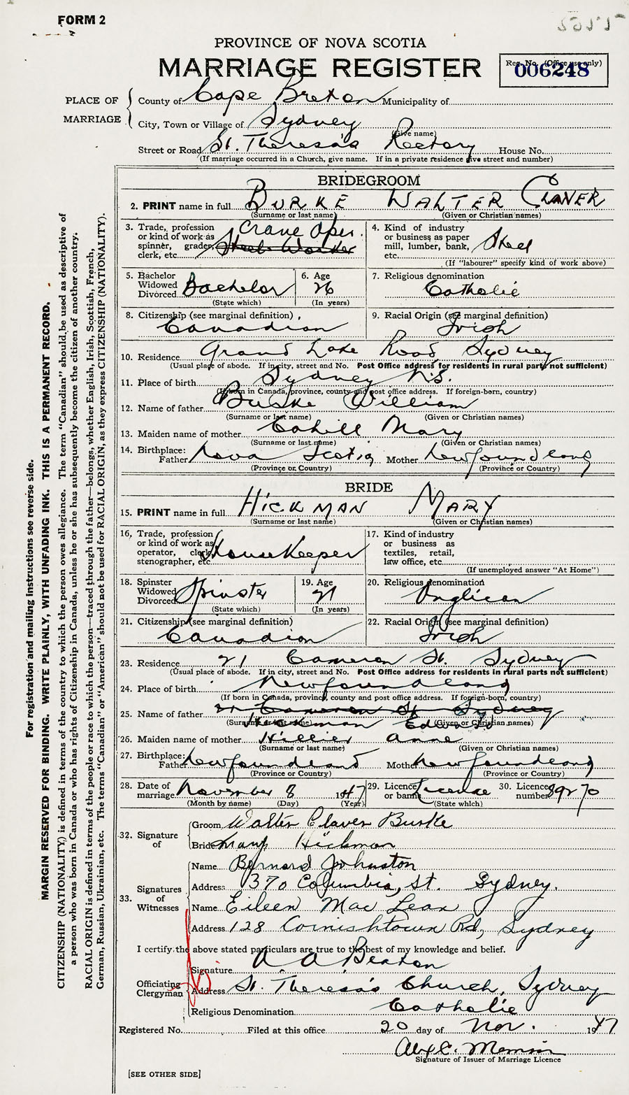 Groom Walter Claver Burke