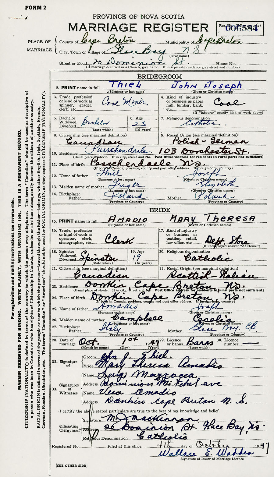 28. Date of marriage October 1 1947 29. By license or banns License 30. License number