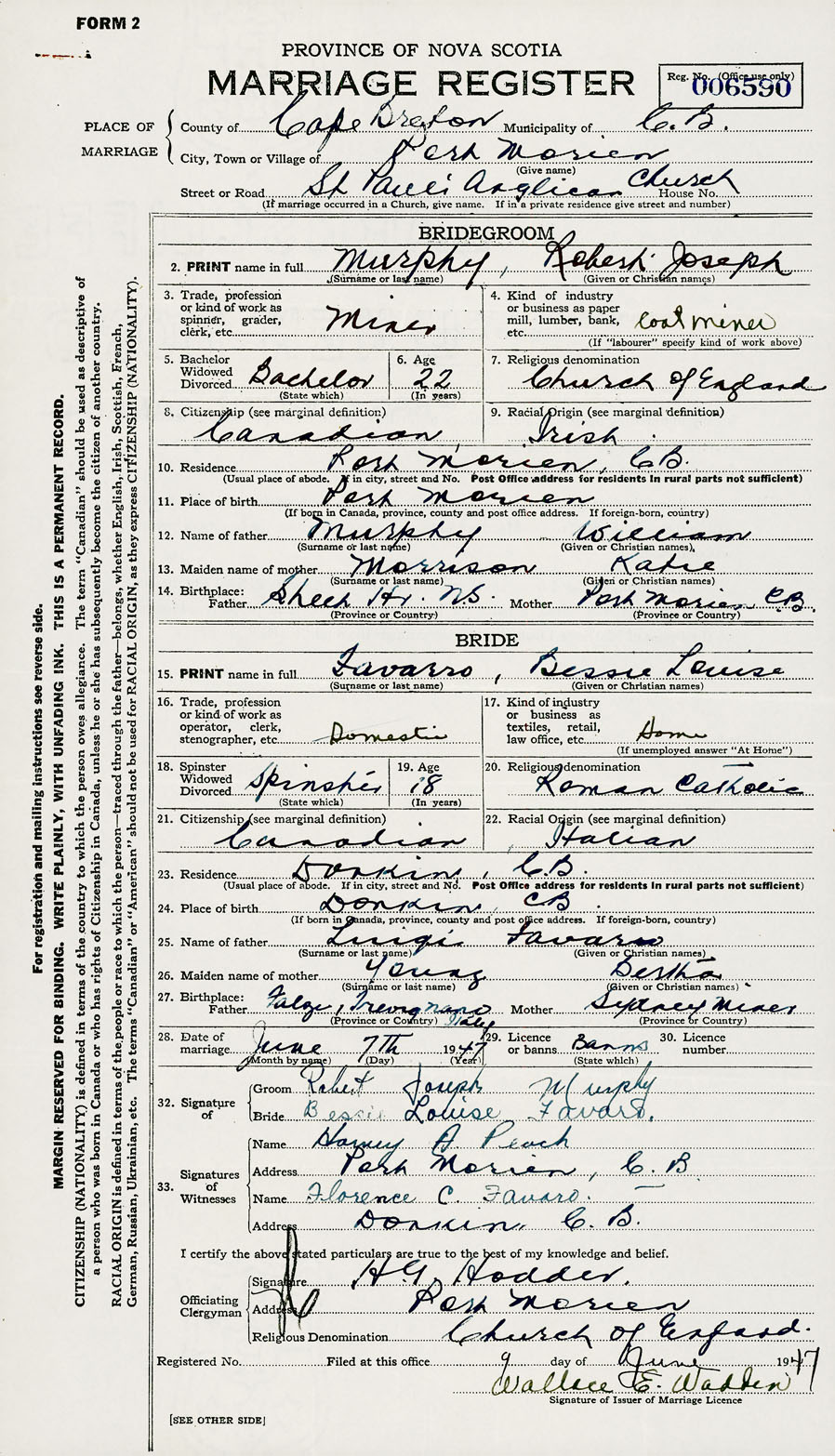 11. Place of birth Port Morien