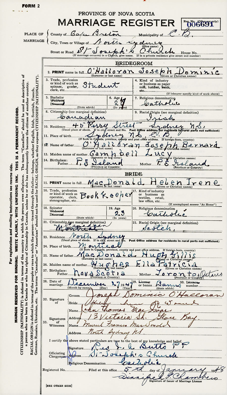 2. PRINT name in full O'Halloran, Joseph Dominic