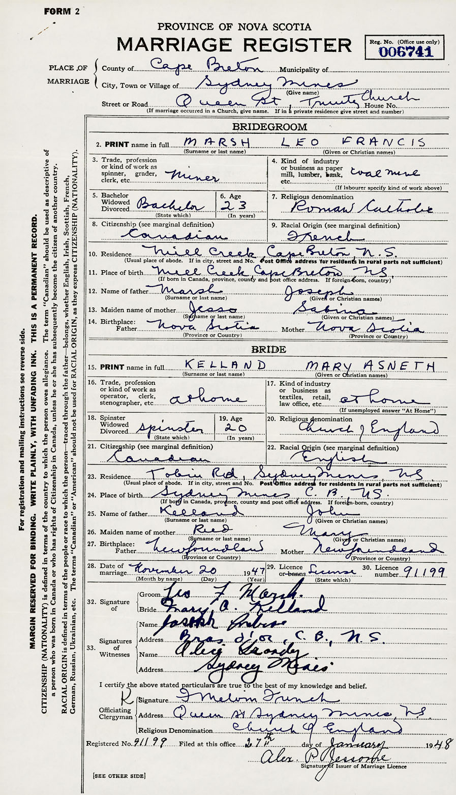 Groom Leo Francis Marsh
