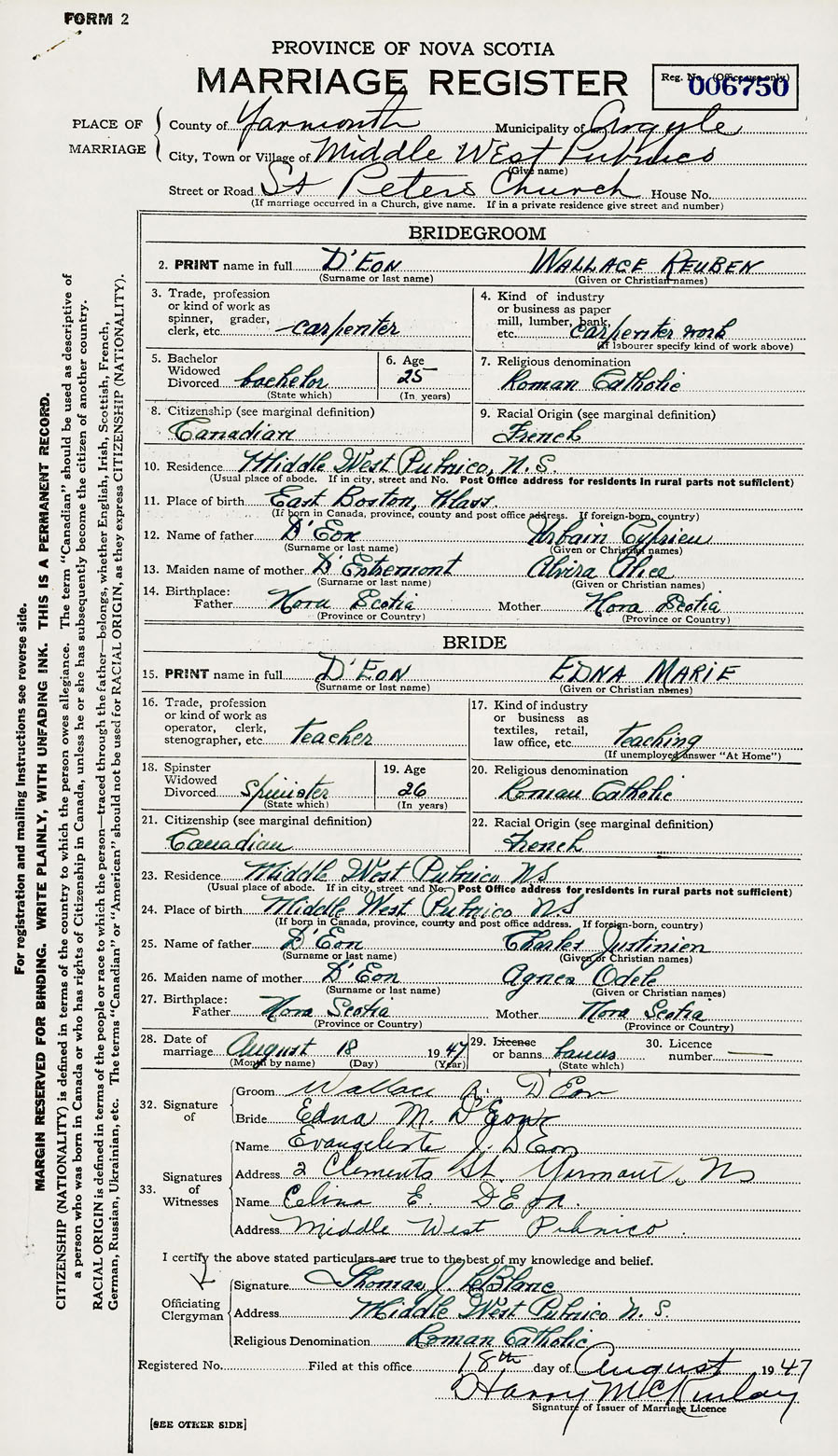 Groom Wallace Reuben d'Eon