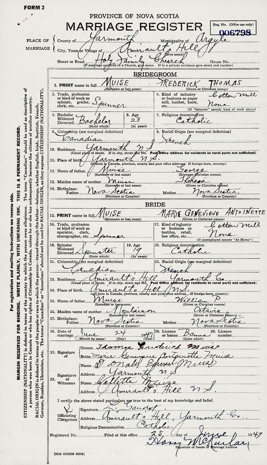 24. Place of birth Amirault’s Hill, Nova Scotia