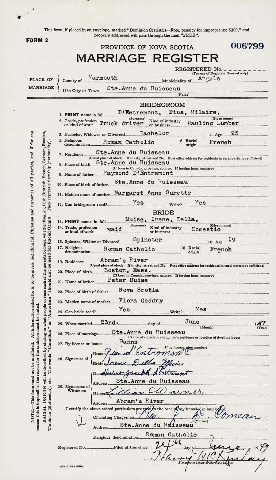 Registration: Year: 1947 number: 006799