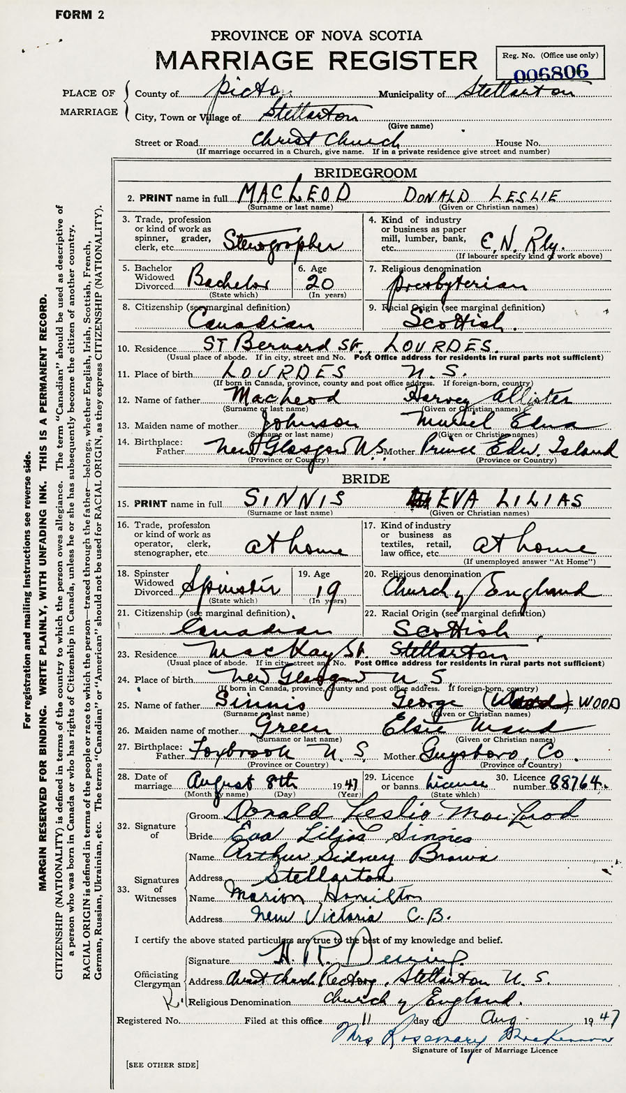 Groom Donald Leslie MacLeod