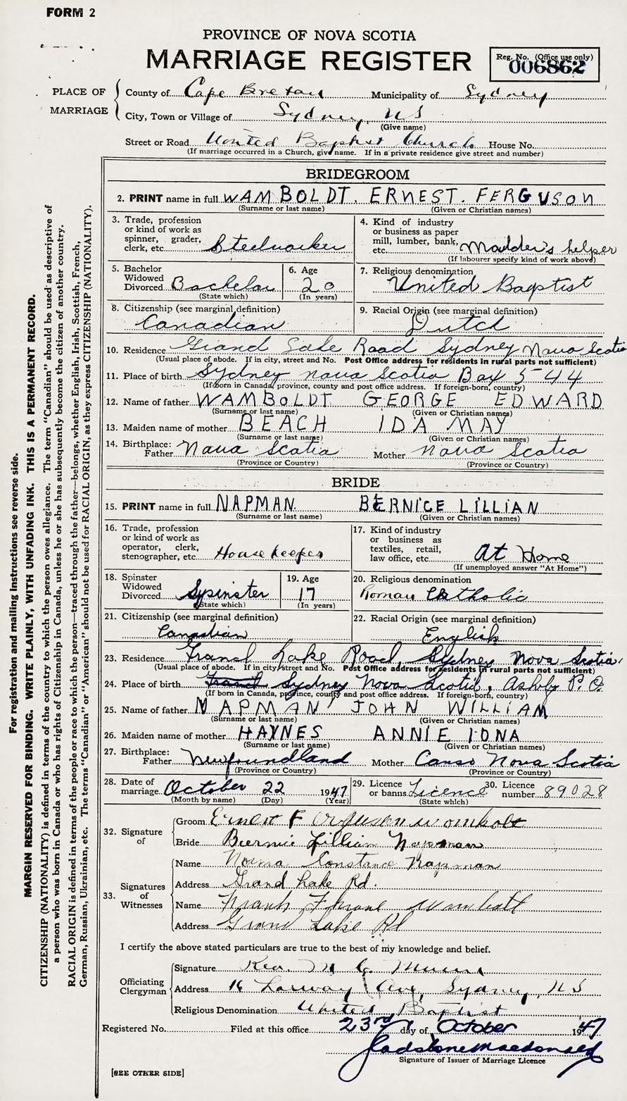 2. PRINT name in full Wamboldt, Ernest Ferguson