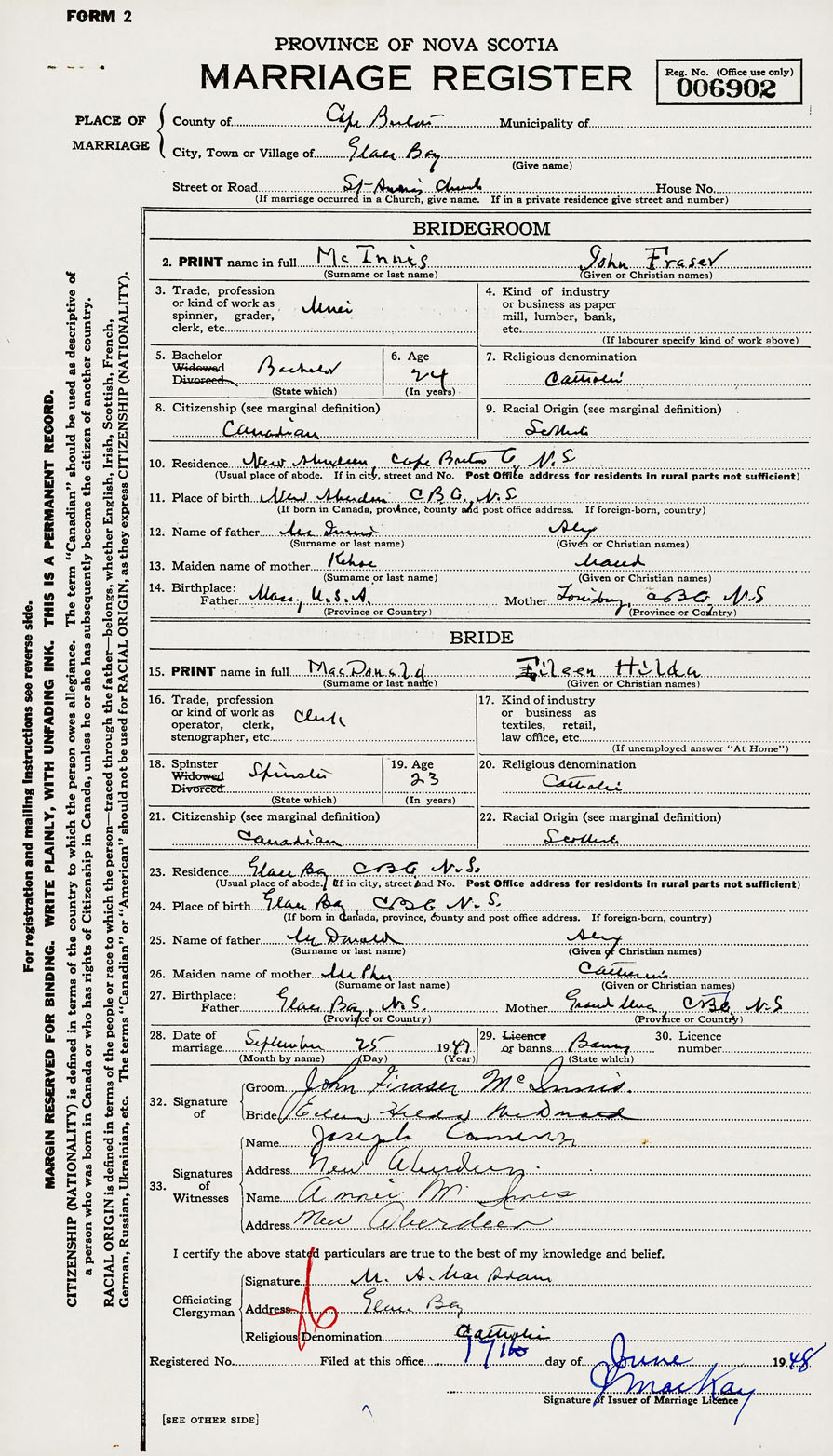Groom John Fraser McInnis