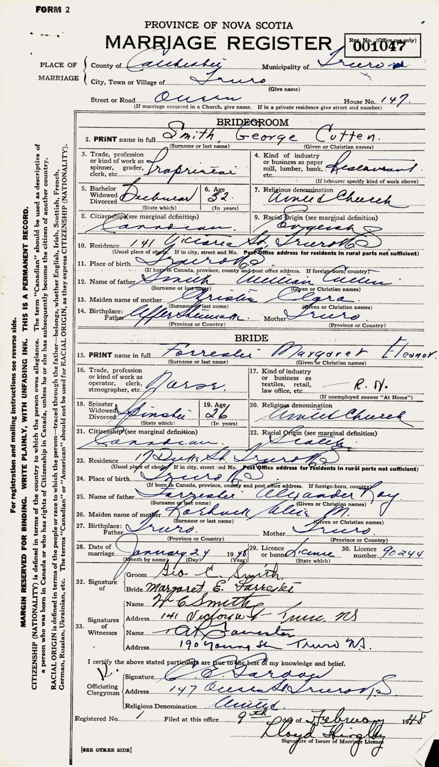 Registration: Year: 1948 number: 001047