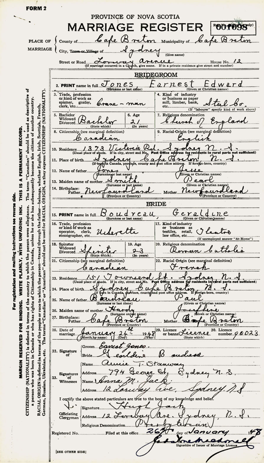 Registration: Year: 1948 number: 001098