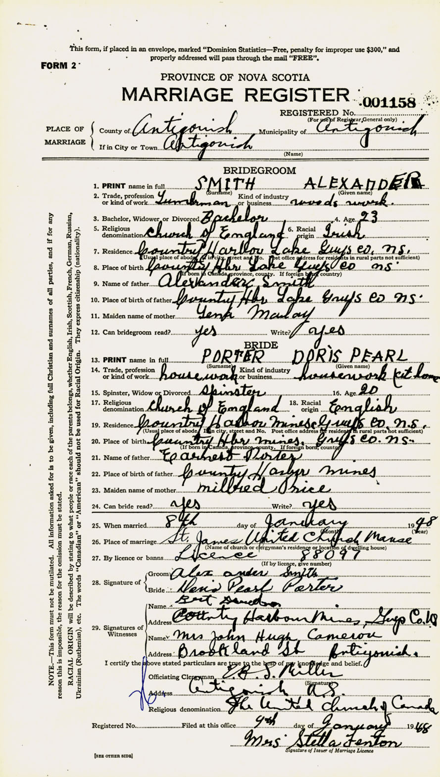Registration: Year: 1948 number: 001158