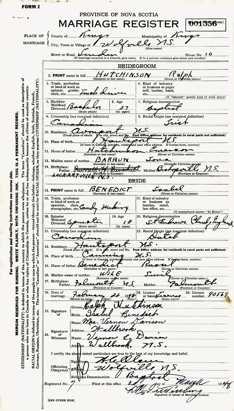 Registration: Year: 1948 number: 001556