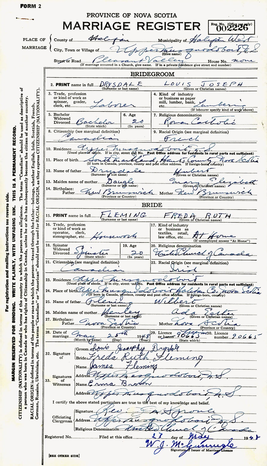 Registration: Year: 1948 number: 002226