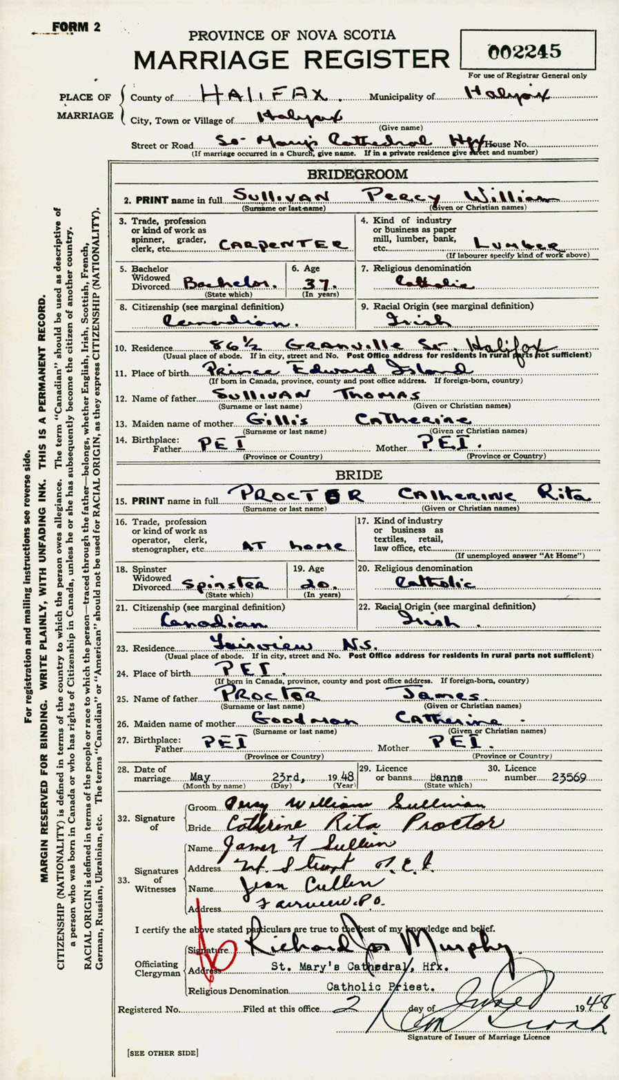 Registration: Year: 1948 number: 002245