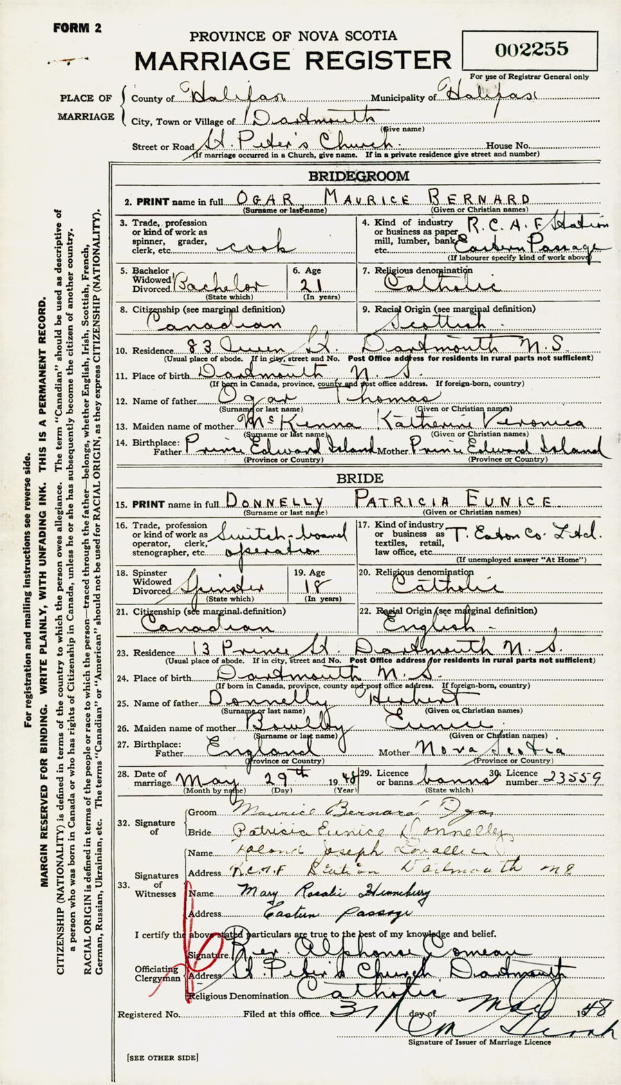 Registration: Year: 1948 number: 002255