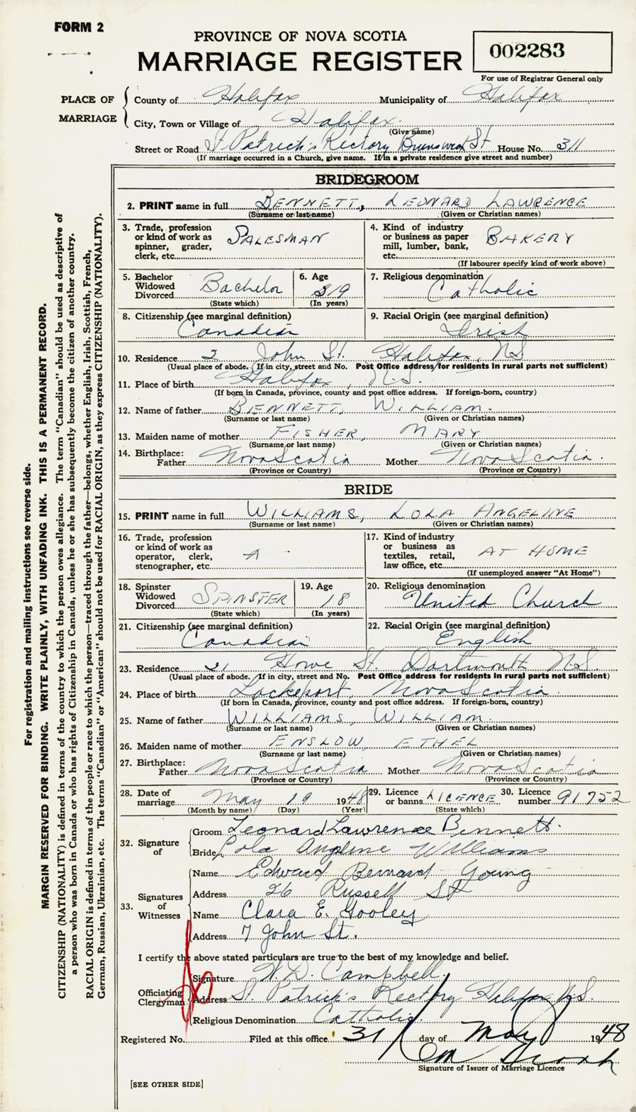 Registration: Year: 1948 number: 002283
