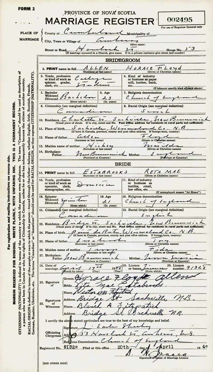 Registration: Year: 1948 number: 002495