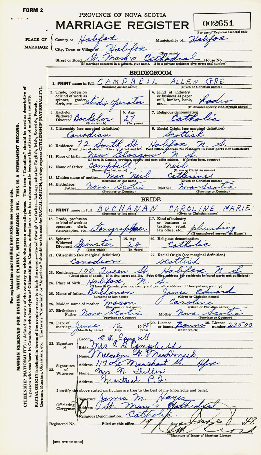 Registration: Year: 1948 number: 002651