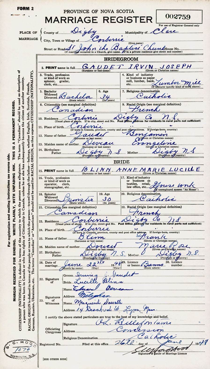 Registration: Year: 1948 number: 002759